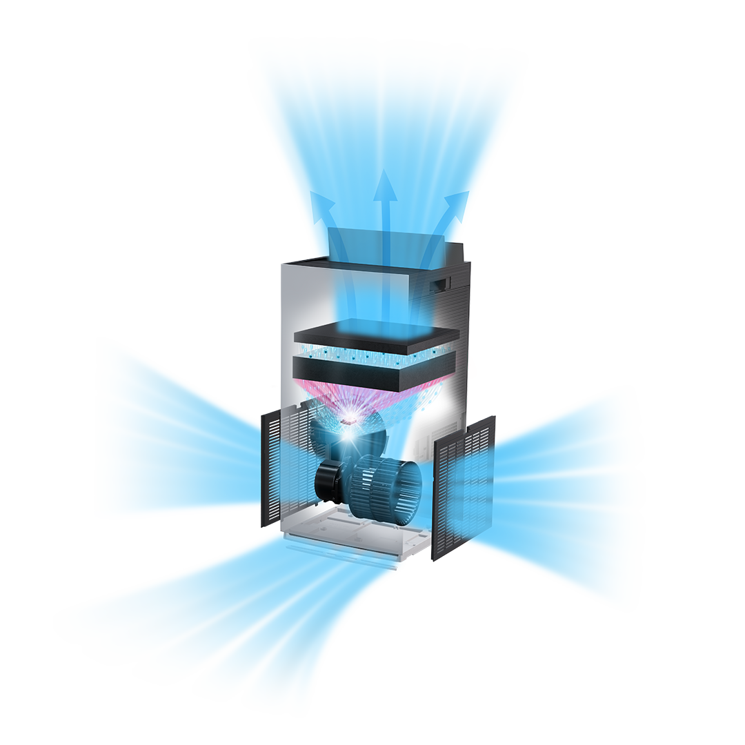 1 Announced for commercial-use air purifiers with release of ACB50X on March 1, 2021. 2 Testing organization: Kaken Test Center. Test number: No.OS-20-052690. Test method: JIS L 1902:2015 Bacterial liquid absorption method Test target: three types of bacteria. Test result: Antibacterial activity value 2.0 or higher. 3 As of February 2023. Streamer discharge technology generates decomposing elements that have oxidative decomposition capability.