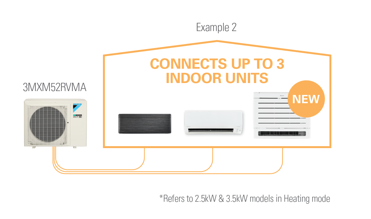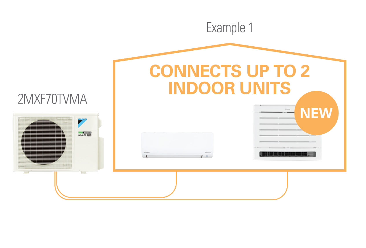 The Aura (25–50) floor-standing indoor unit is now connectable to multi-split outdoor systems, offering greater flexibility in system design.