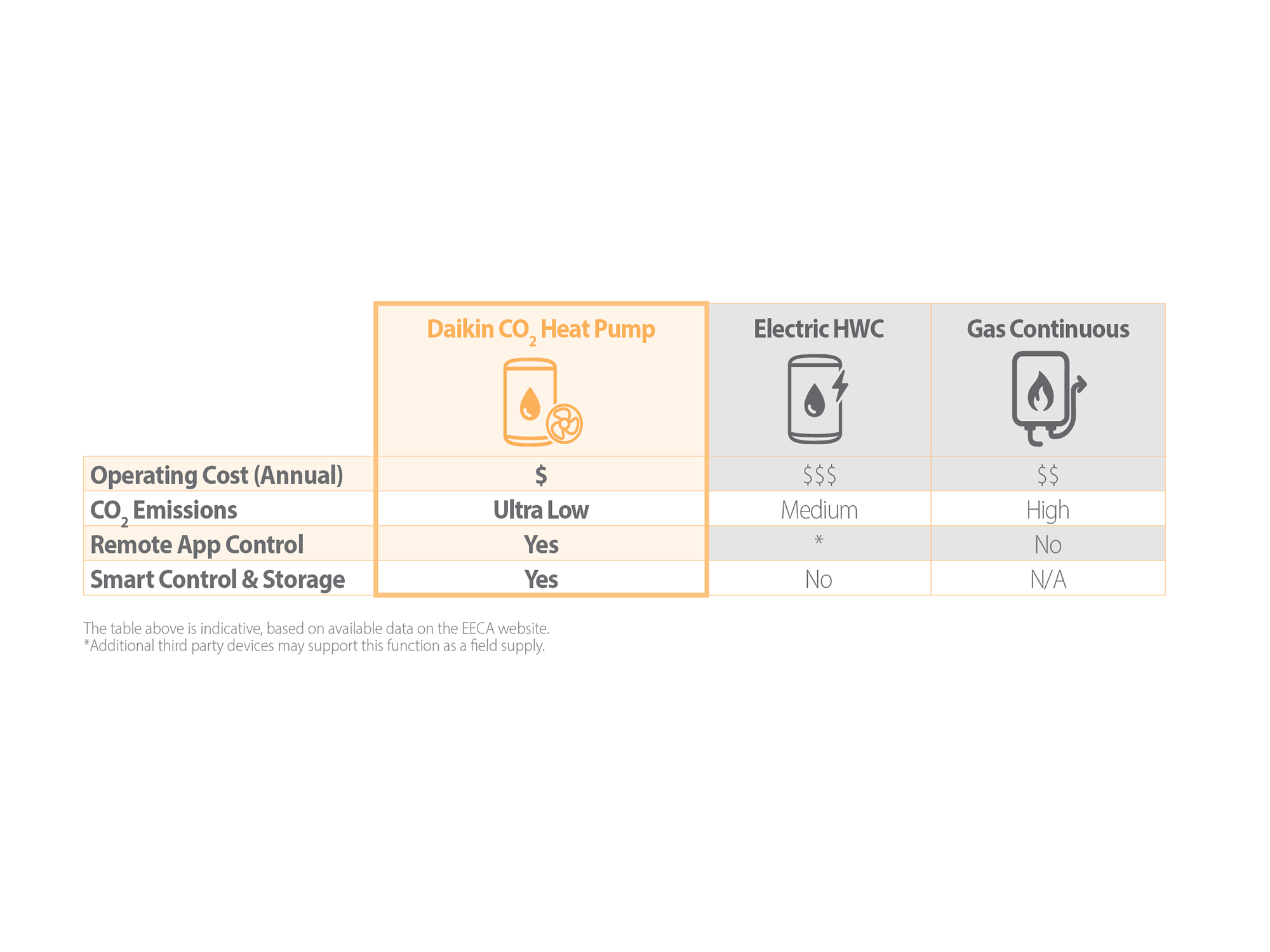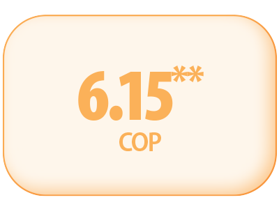 *Depends on temperature conditions and hot water usage comparing to electric resistance water heaters.** Based from design conditions of ambient temperature 33.0°C DB (23.5°C). Inlet and outlet water temperature 21.0°C / 63°C.^ Based from design conditions of ambient temperature 33.0°C DB (23.5°C). Inlet and outlet water temperature 21.0°C / 63°C.