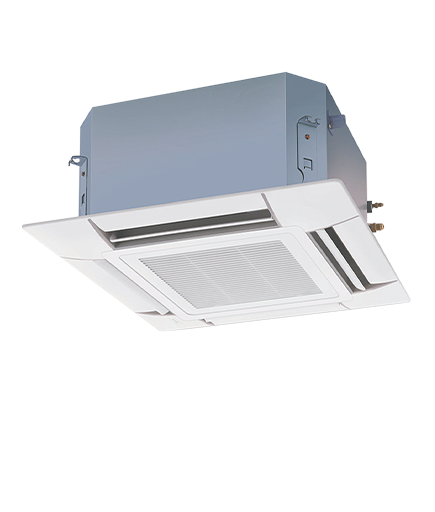 This discreet configuration allows the indoor unit to be installed completely flat to the ceiling. The unit is designed to fit inside a ceiling with a height of 300 mm or more and a ceiling grid of just 600 mm wide. This allows lights, speakers and sprinklers to be placed in adjoining ceiling tiles.