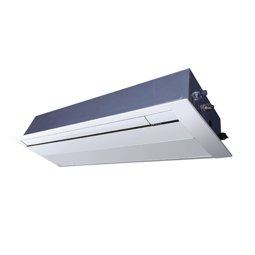 The FXEQ-AV36 series is a slim body, discreet single flow ceiling mounted cassette ideal for installation into tight ceiling spaces of as low as 255mm. Features include a DC fan motor with 5-step fan speed and automatic airflow, 3D Airflow function enabling vertical and horizontal auto-swing for effective air distribution and a built-in drain pump with 850mm lift.